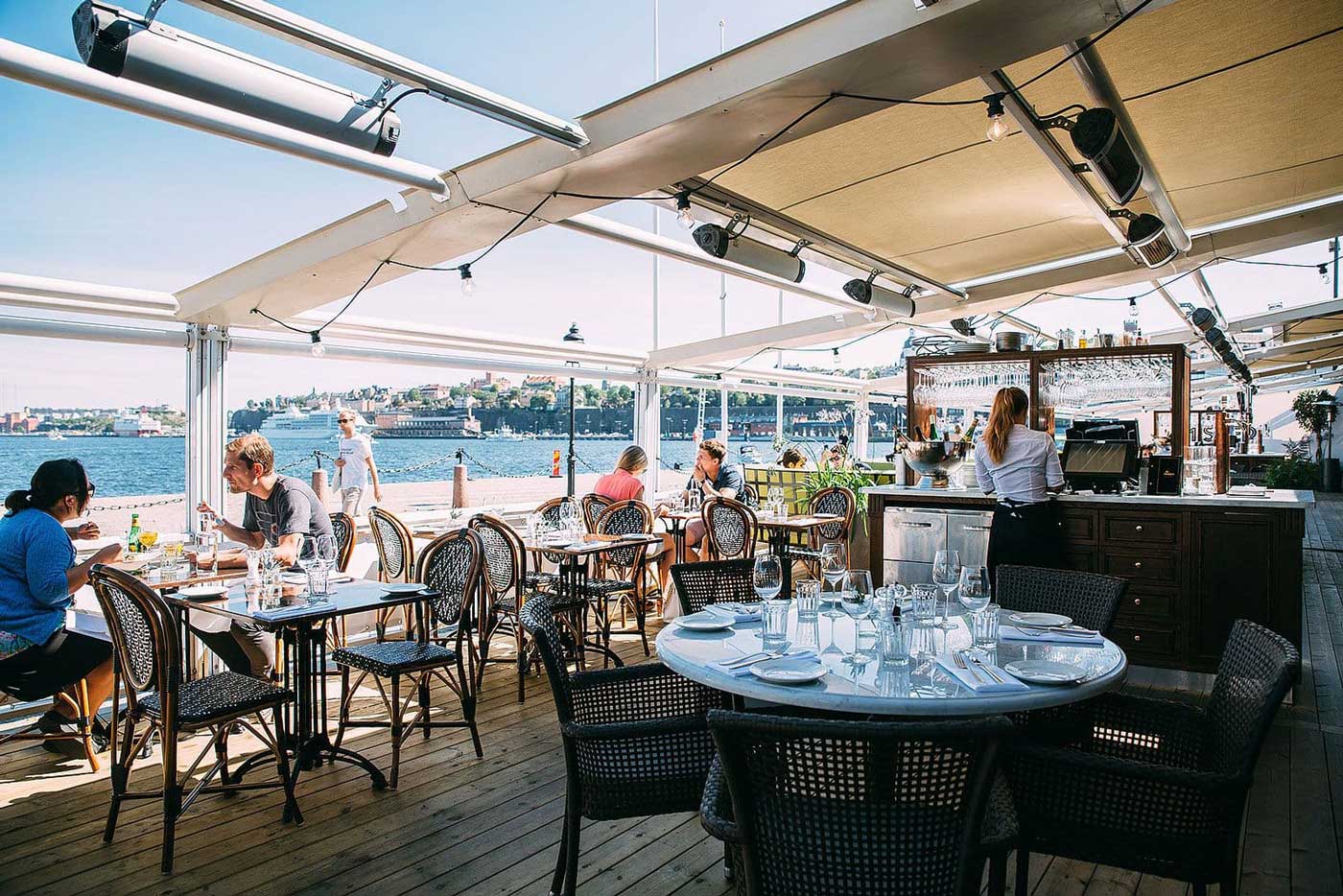 Retour sur la terre ferme et déjeuner sur la rive Est de la vieille ville avec vue sur la Baltique et l’île de Skeppsholmen.