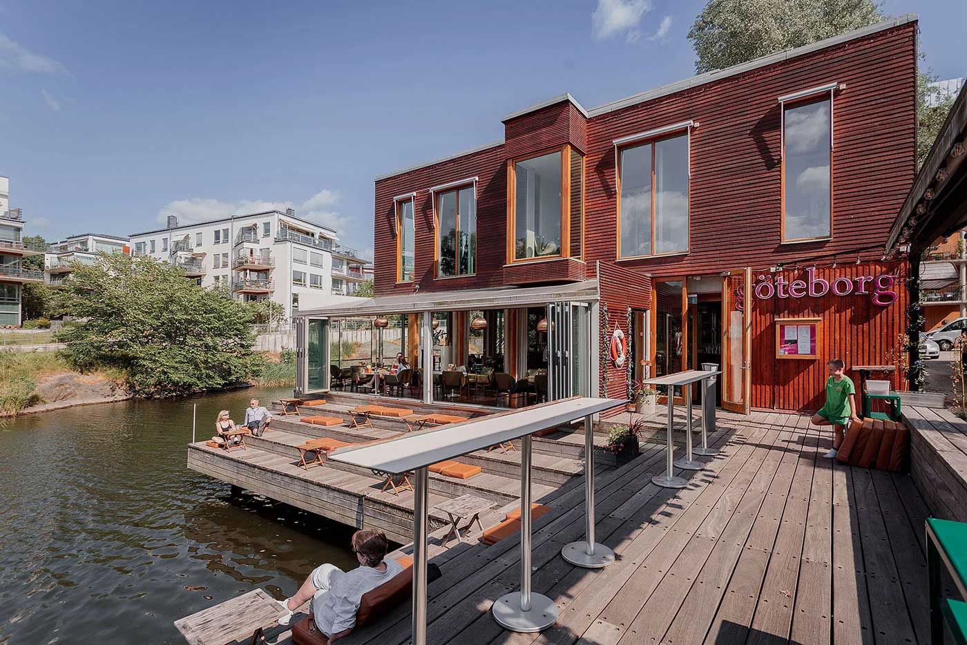 Déjeuner au restaurant Göteborg sur pilotis, en bord de canal.